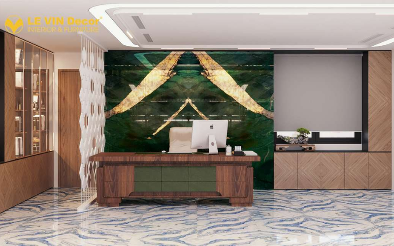 Quầy lễ tân ấn tượng cho văn phòng mệnh Thổ