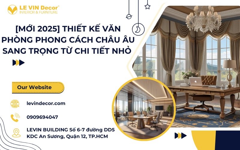 Thiết kế văn phòng phong cách Châu Âu tại Le Vin Decor mang đến không gian làm việc sang trọng, tinh tế và chuẩn xu hướng 2025. Với dịch vụ
