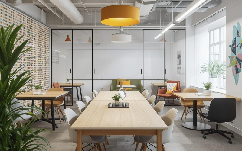 Bên cạnh đó, không gian sáng tạo còn giúp tăng sự kết nối và hợp tác giữa các phòng ban trong doanh nghiệp. Khi văn phòng được thiết kế mở hoặc có các khu vực thảo luận chung, nhân viên có thể dễ dàng trao đổi công việc, chia sẻ ý tưởng và phối hợp với nhau hiệu quả hơn. Điều này không chỉ giúp cải thiện quy trình làm việc mà còn góp phần nâng cao hiệu quả tổng thể của dự án và doanh nghiệp.
